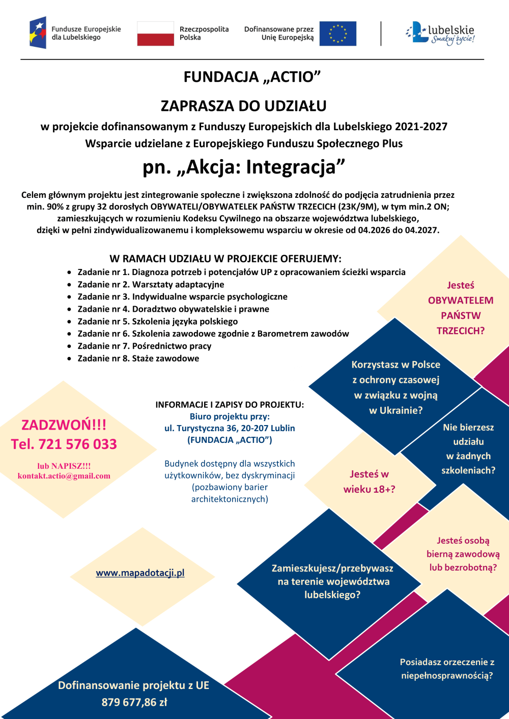 Projekt „Akcja: Integracja” - Powiatowy Urząd Pracy w Krasnymstawie